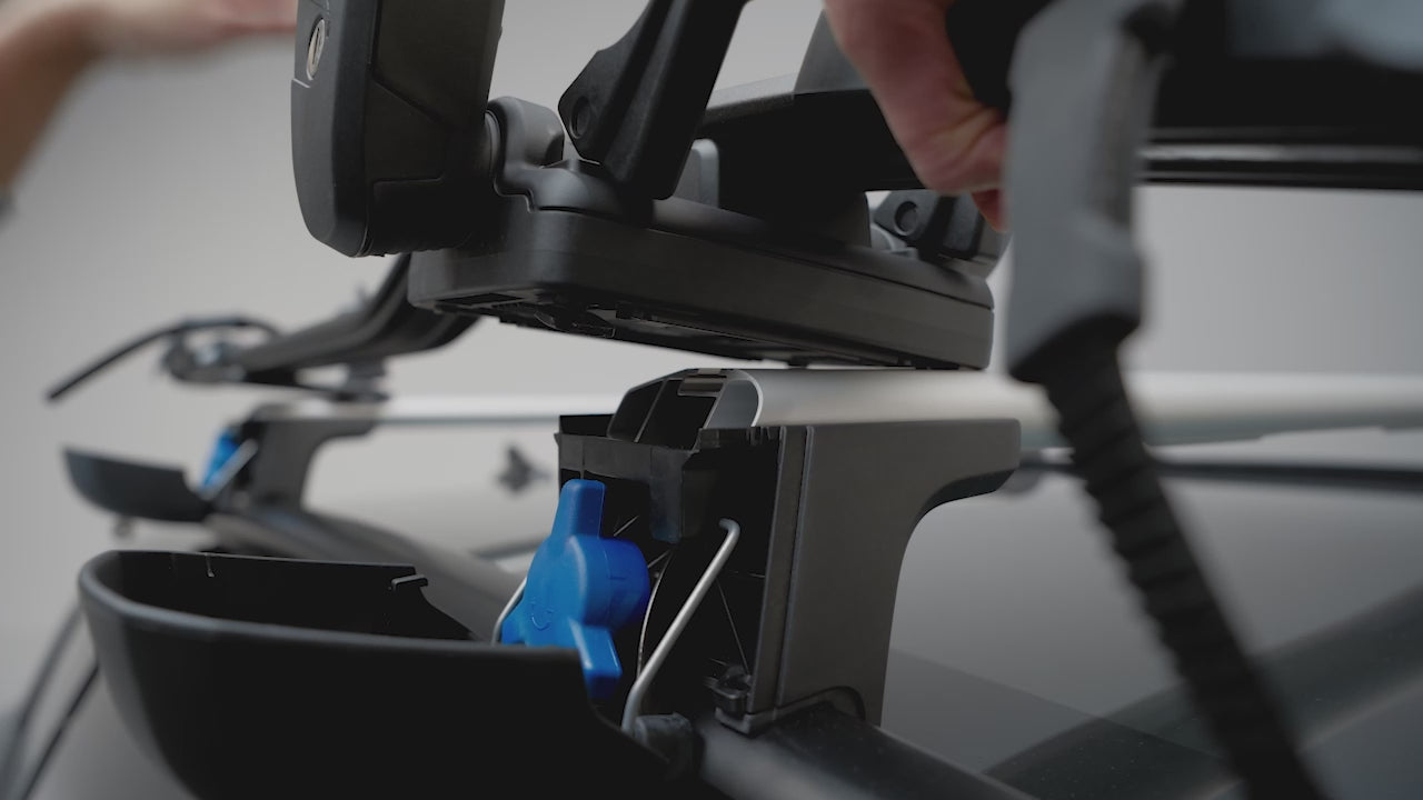 The bicycle carrier can be mounted on either side of the vehicle roof and is not direction-dependent. Switching it from one side of the vehicle to the other is easily done without tools. Additionally, both the bicycle and the carrier can be locked to the roof rack or crossbar. The bicycle carrier meets Volkswagen's high safety standards and is City Crash Plus certified.